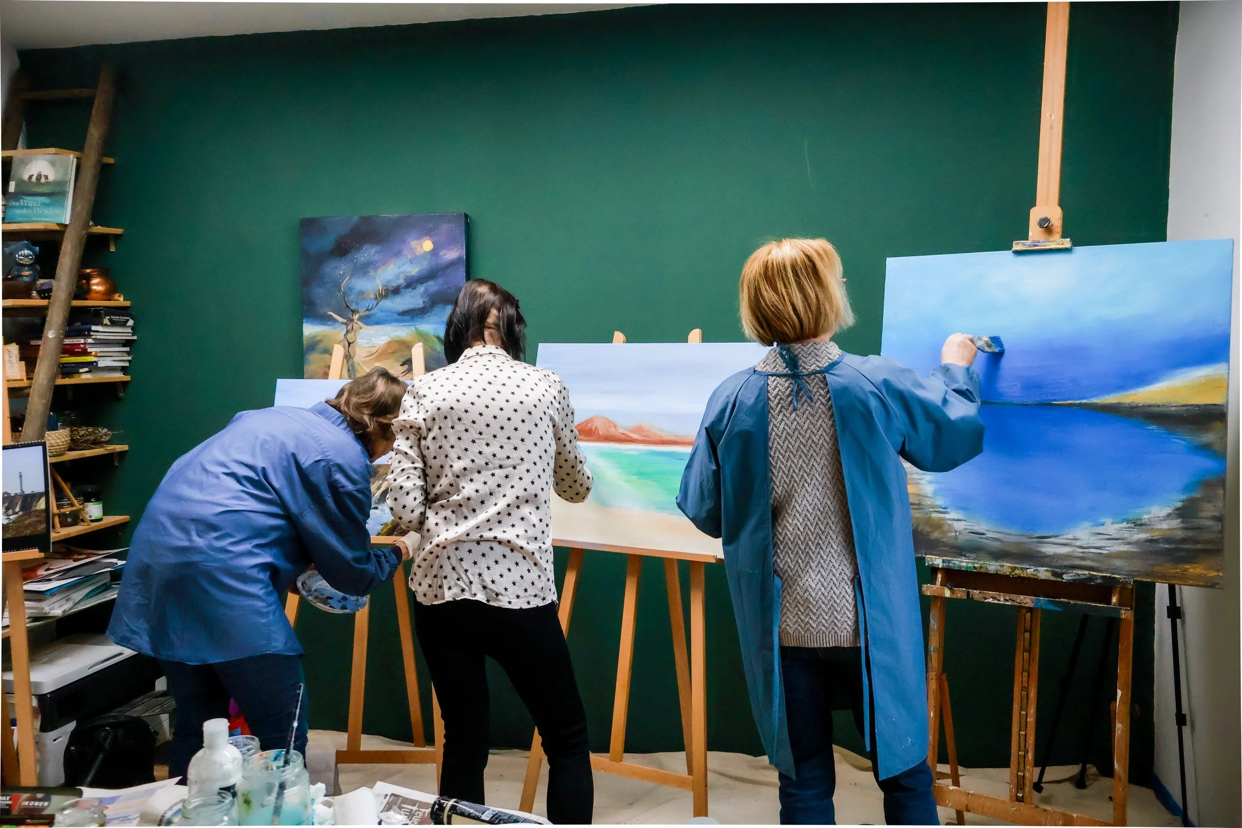 Bei mir im Atelier zum Beispiel treffen sich dienstags bis zu 7 Frauen, um regelmäßig zu malen. Jeder bringt seine Leinwand mit und arbeitet an seinen Projekten.