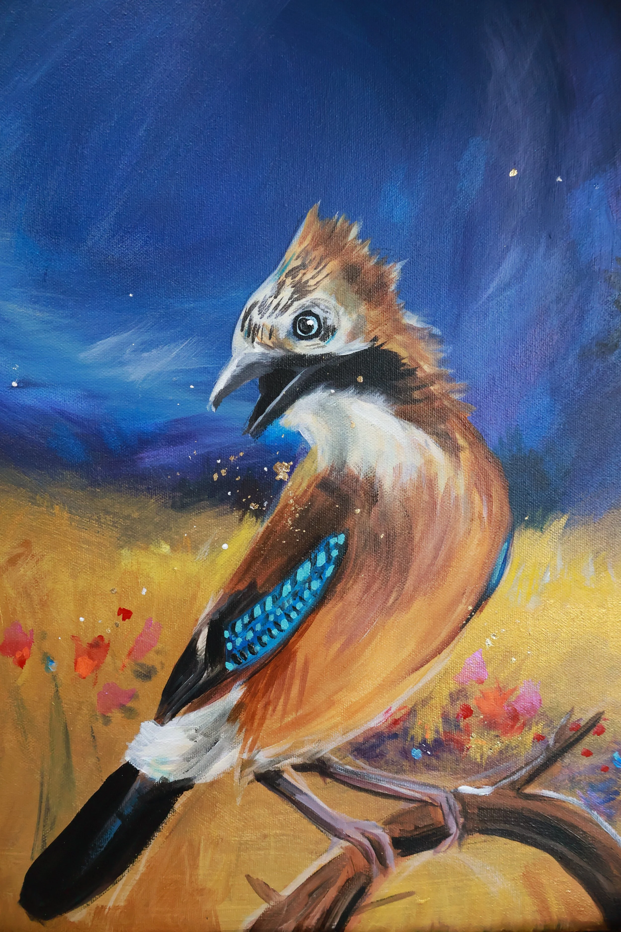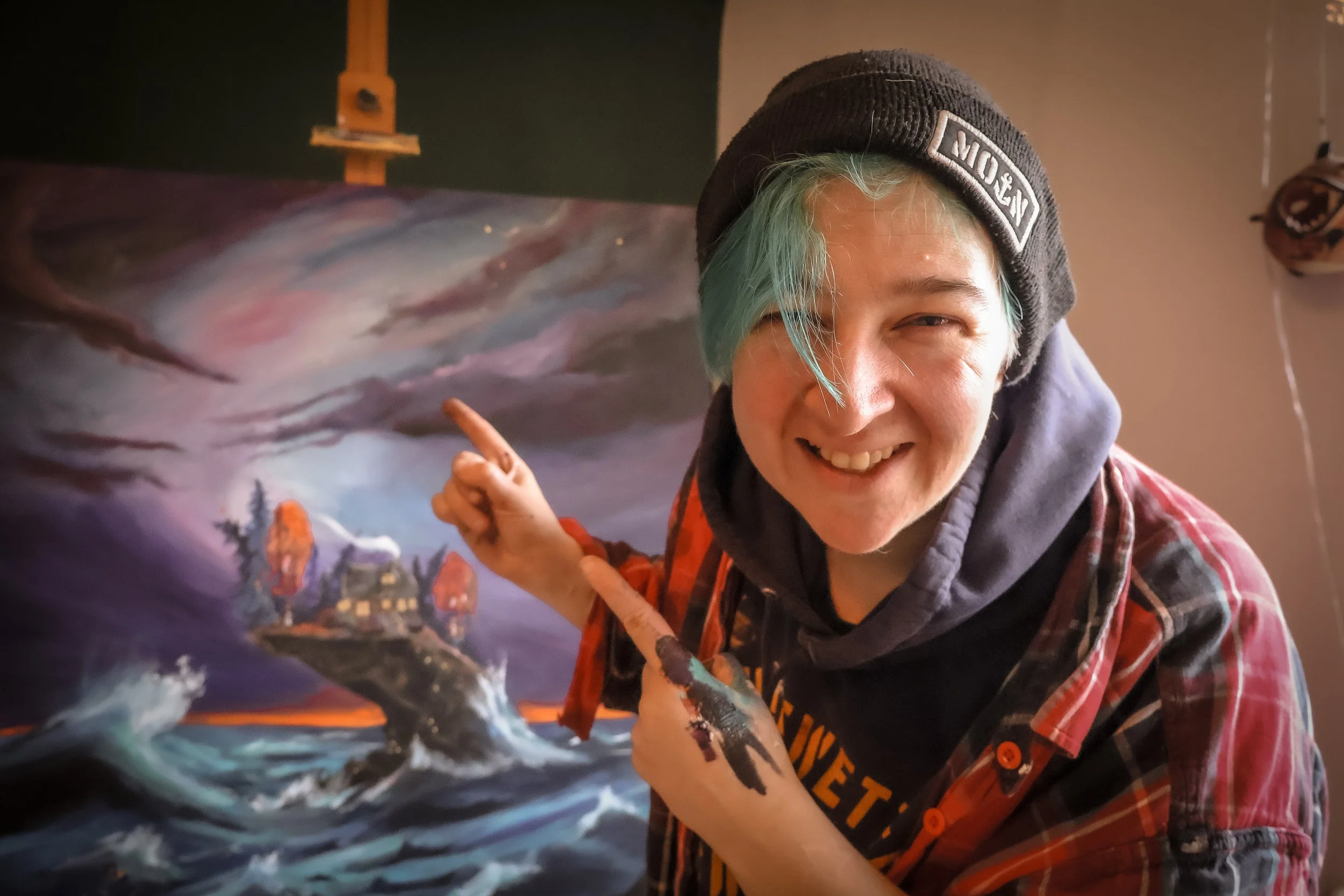 Auch meine Motive sprechen von diesem Innerem Bedürfnis auf diese Art mit der Welt zu verbinden. Meistens male ich Wald, Wiesen oder Wellen mit Tieren oder magischen Kreaturen darin.